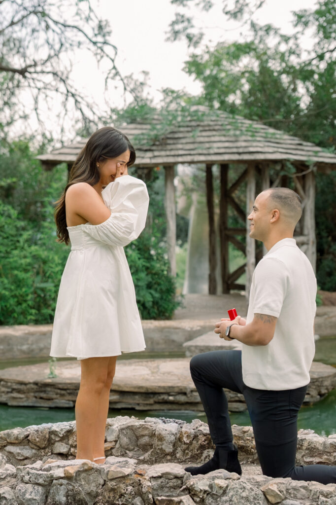 Terrell chose the McNay Art Museum in San Antonio, Texas as the place he wanted to propose to Karla. It’s a unique spot, filled with beautiful and interesting spaces within the property. He decided to pop the question on the grounds of the museum, which is a well-kept and picturesque area for visitors. The photos turned out perfectly, and told the story of the moment Karla said yes to forever.